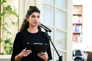 След чудесното въведение към романа водещата представи Мария Лалева с кратка визитка. В нея тя бе определена като невероятен творец – ерудиран и талантлив разказвач с непрекъсващо желание за писане, лиричен и чувствен поет, автор, който се вглежда дълбоко в човешката душа и разплита сложния гоблен на човешкото съществуване, предлагайки на читателите поглед към по-дълбокия смисъл на живота. Подчертан бе големия читателски интерес към нейните романи „Живот в скалите“(2018) и „Пасиансът на архангелите“(2021), които след издаването си, стават бестселъри и години наред са водещи в класациите за най-продавани книги на българския книжен пазар.